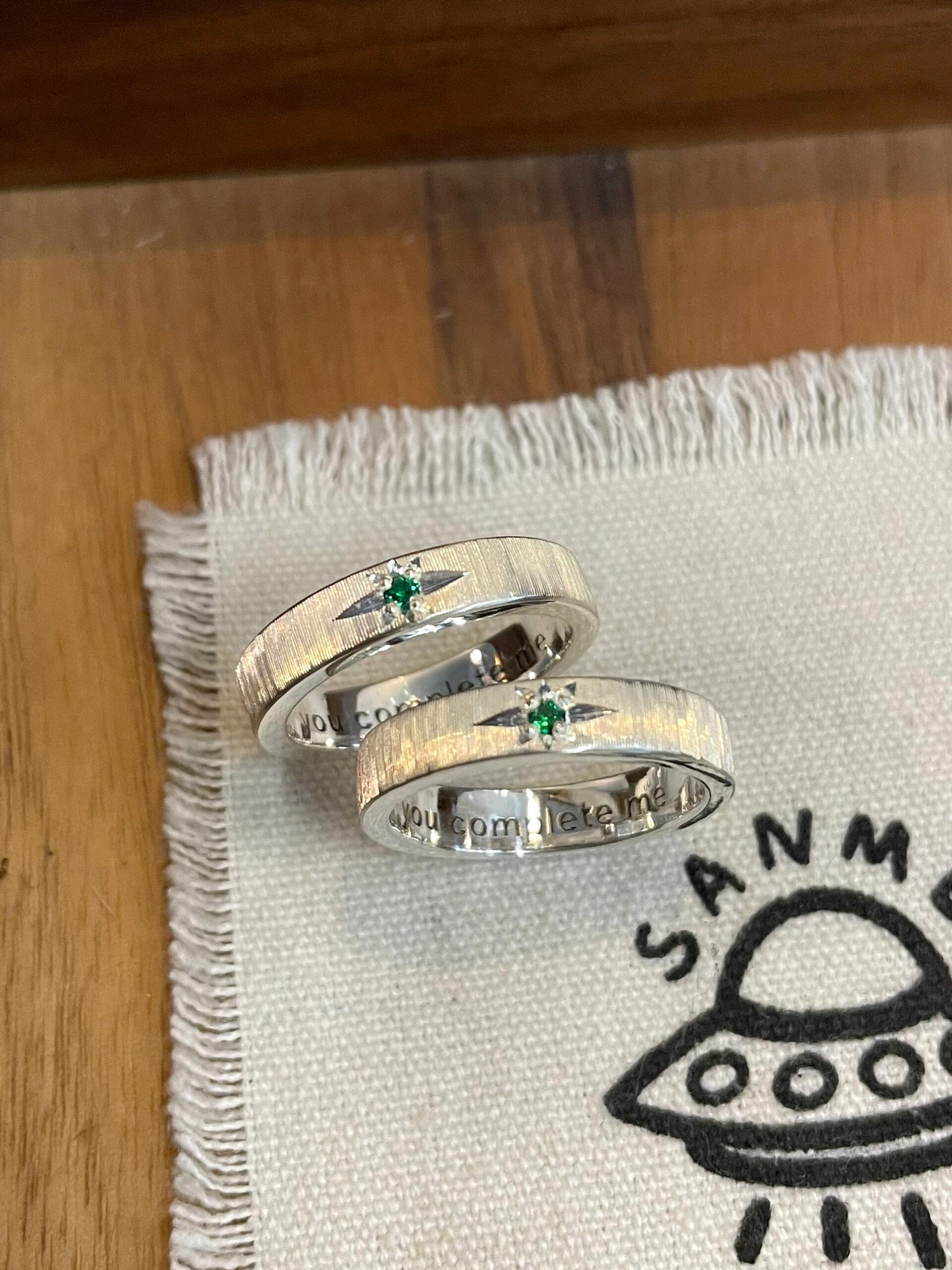 Handcrafted White and Blue Zirconia Brushed Finish Ring - Circle of Starlight Collection (Free Customisation)