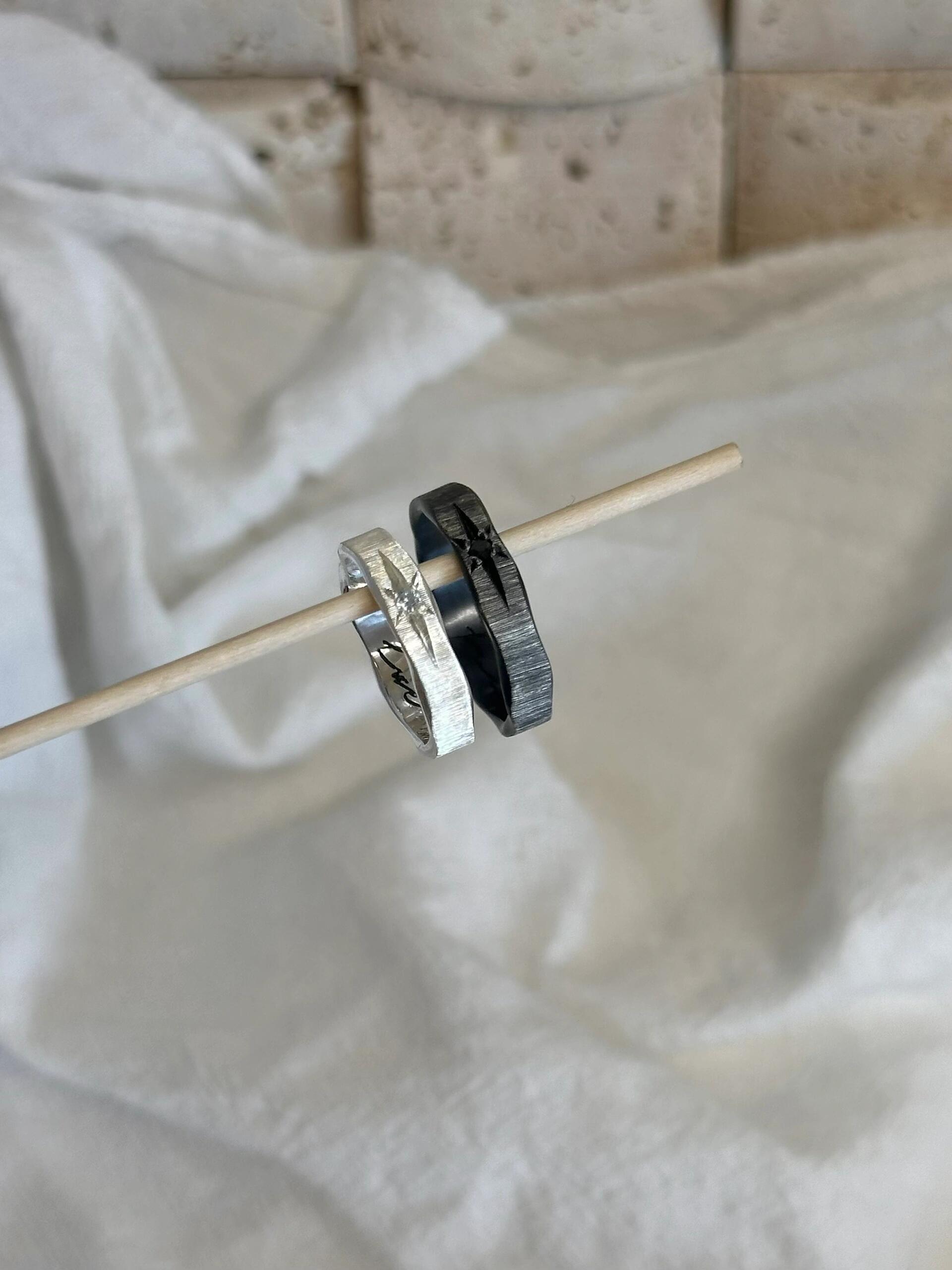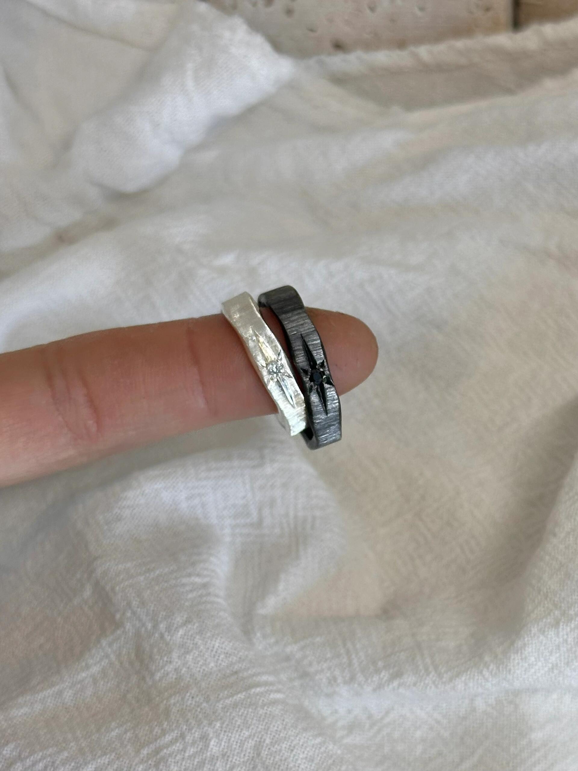 Handmade Black Zirconia Brushed Ring - One Star Wavy shape Collection